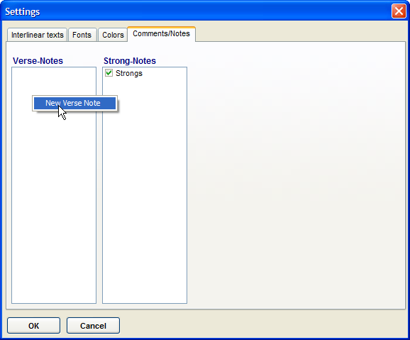 a new Verse-Note: right-click the listbox of the Verse-Notes. Enter a name and