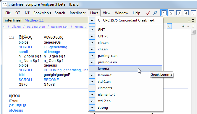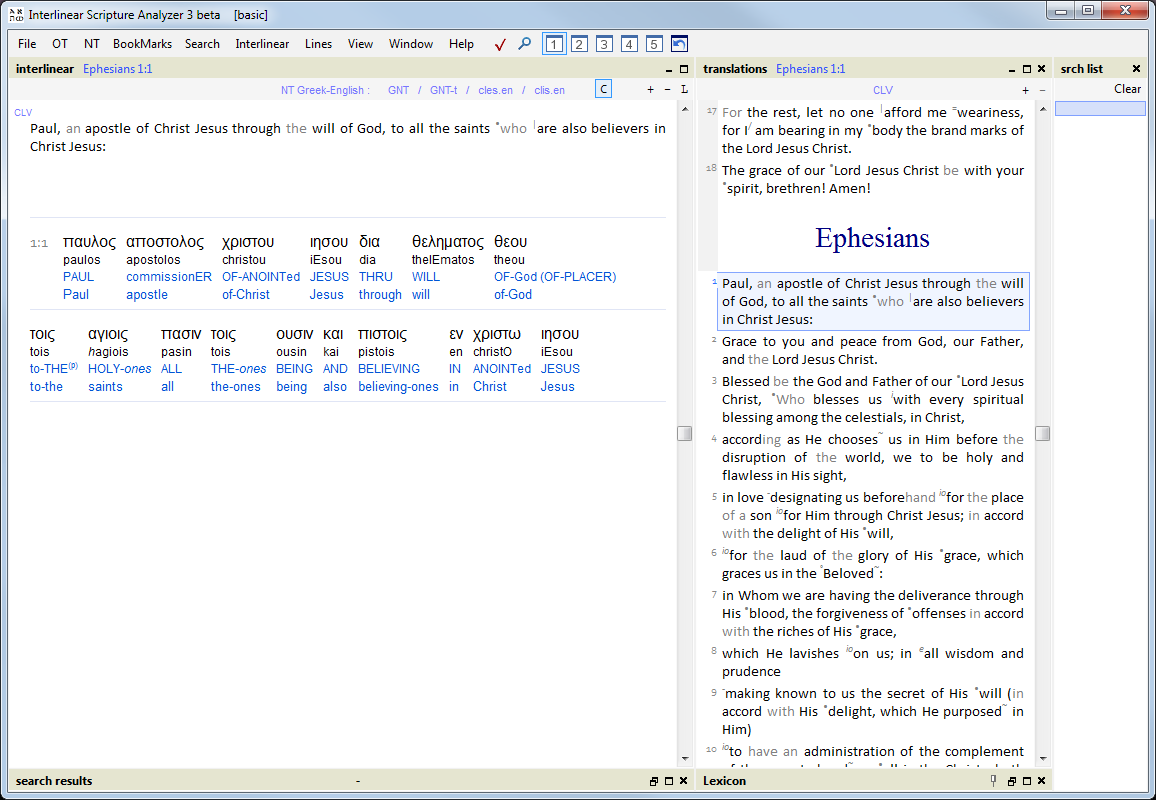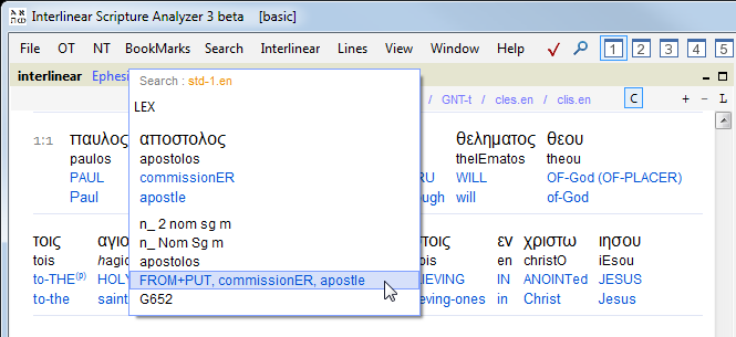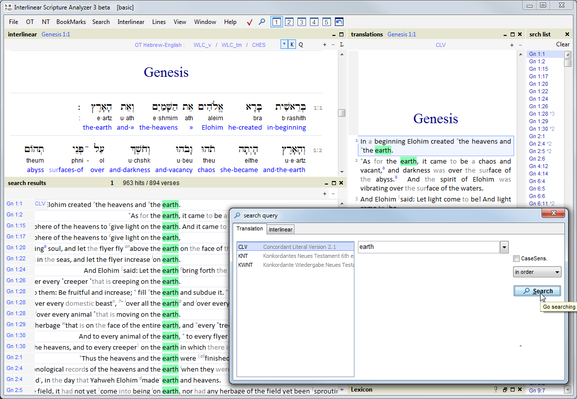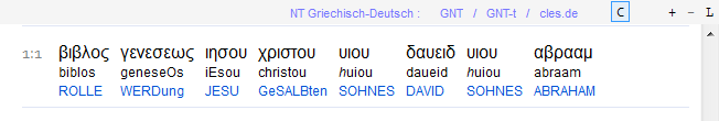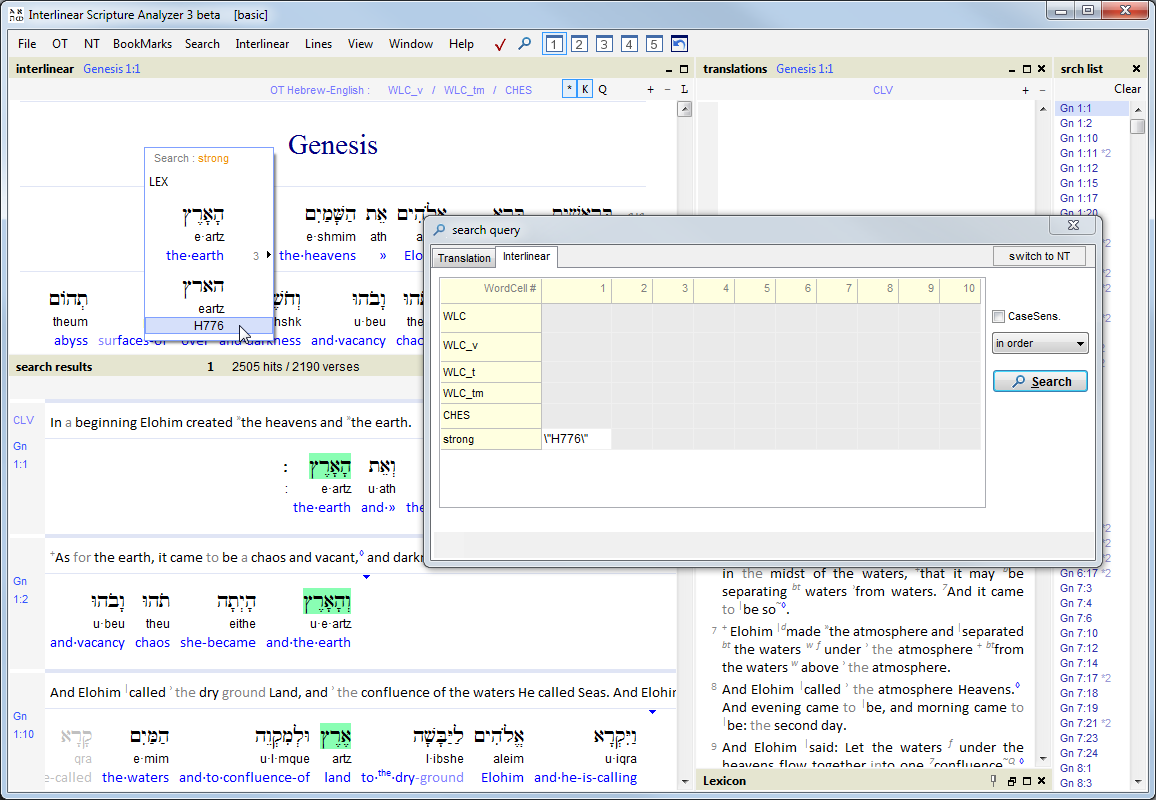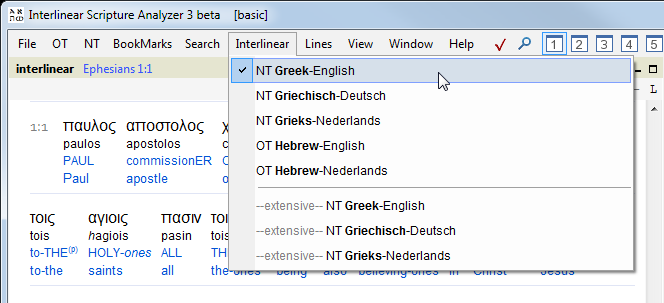 ISA3 basic screenshots:Main view: ![]() Greek interlinears in three different languages : English, German and Dutch. Hebrew interlinears in two languages : English and Dutch: [all interlinear lines] ![]() Showing the other lines. You can start searching from here or show the Strong's Lexicon: ![]() Interlinear in German (Deutsch): ![]() Interlinear in Dutch (Nederlands): ![]() Each interlinear (preset) has multiple lines that can be enabled or disabled: ![]() And the Hebrew interlinear (Dutch also available): ![]() Doing a search with a Strong's number: ![]() Searching translation: ![]() See also: preview ISA3 pro | ||